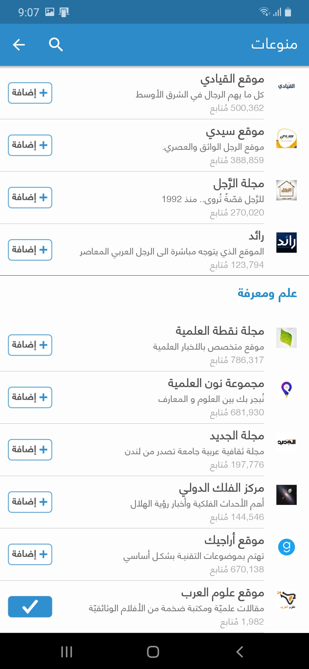 إن كنت من مستخدمي تطبيق نبض بالفعل، فبإمكانك الآن العثور على موقع علوم العرب و إضافته إلى مصادرك المفضلة، حيث ستجد الموقع في تصنيف علوم